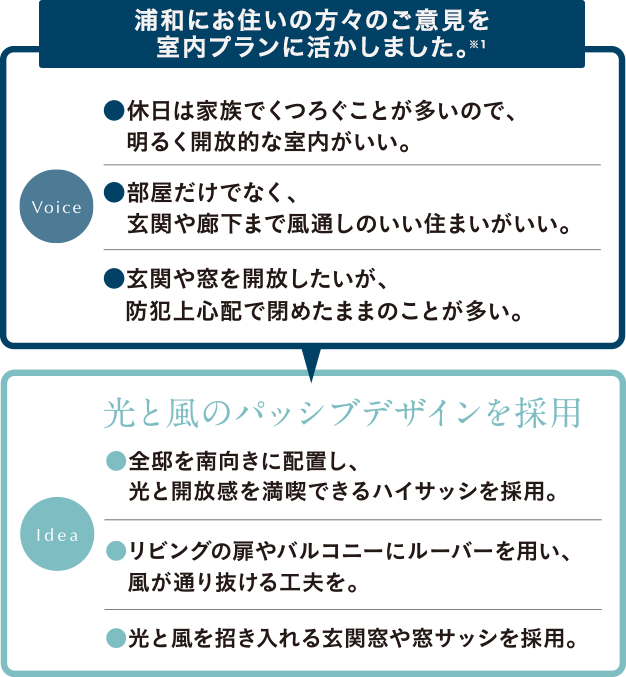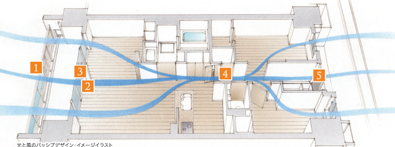 ※掲載のパッシブデザインのイラストはあくまでイメージ図であり、設備等省略しているため、実際とは異なります。