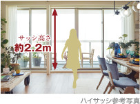- 高さ約2.2mのハイサッシを採用
