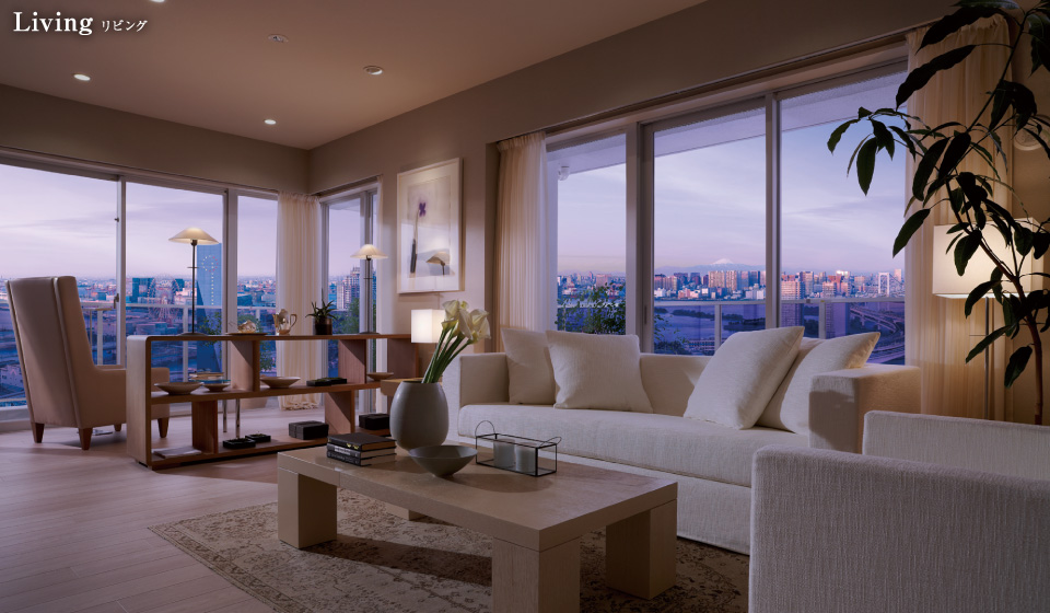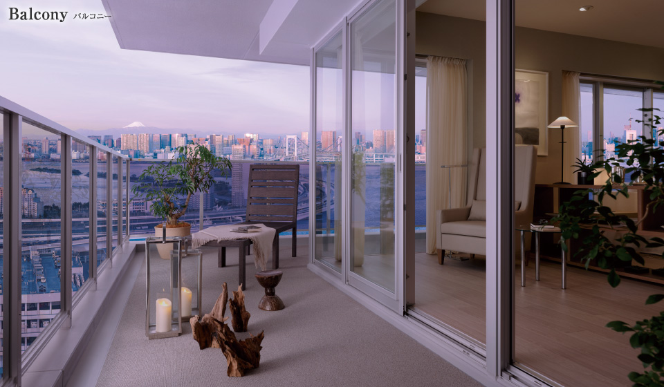 ※掲載の写真はモデルルーム(S-80Mタイプ)を撮影(平成25年3月)し、一部CG処理を施したもので実際とは異なります。また、一部オプション仕様が含まれている他、家具・調度品等は販売価格には含まれません。※掲載の眺望写真は、現地から約280m離れた建物の約110mの高さから撮影したもの(平成24年10月)にCG加工を施したもので、実際の眺望とは異なります。※眺望は、将来にわたって保証されるものではございません。※バルコニーの使用にあたっては、管理規約・使用細則に則っていただきます。