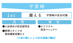 居住者の方を対象に、「防災マニュアル」「防災設備の使用方法」などをご説明する防災説明会を入居時期に合わせて実施いたします。