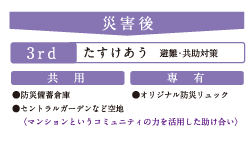 非常時に対応するためのきめ細かな防災マニュアルを居住者の方のために用意。ブリリア独自の「防災対策ガイドライン」は、2011年度グッドデザイン賞を受賞しました。