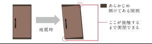 地震などによりドア枠が圧力を受け変形した場合でも、一定の変形量であれば開閉を確保できます。