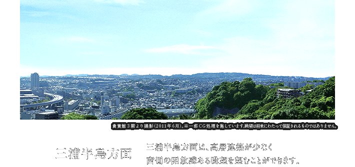 丘の上の地形を活かし、海と空と緑と風を感じながら毎日を過ごすことができる。